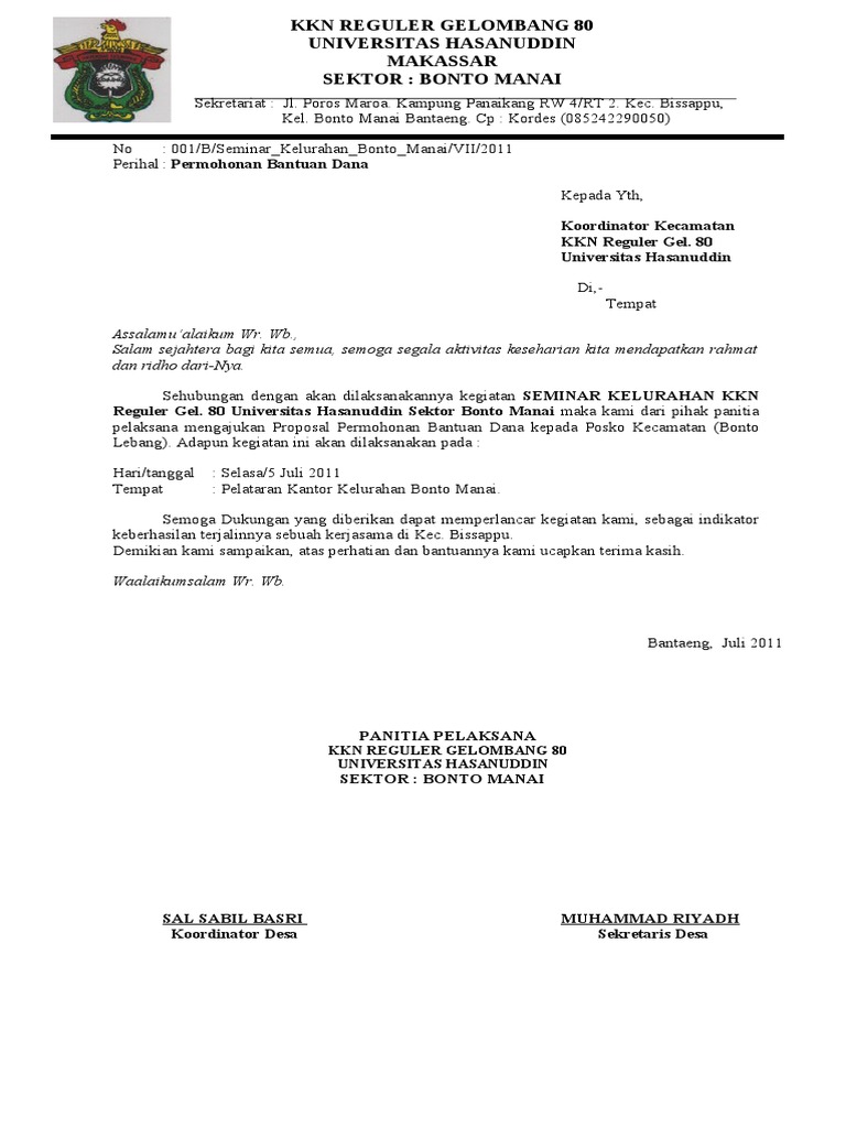 Kami telah menyediakan contoh-contoh surat permohonan dana sebagai referensi yang bisa anda download secara gratis tanpa perlu daftar. 1 Satu Berkas Proposal. Cpenutup boleh sertakan pantun yang sewaktu dengannya.