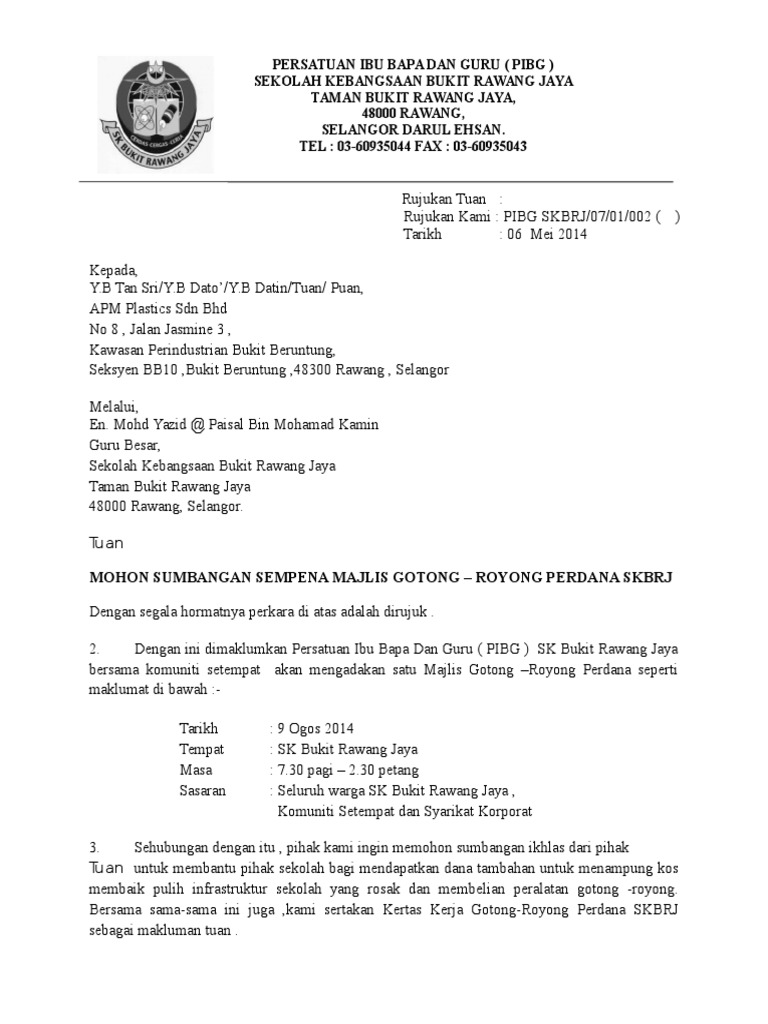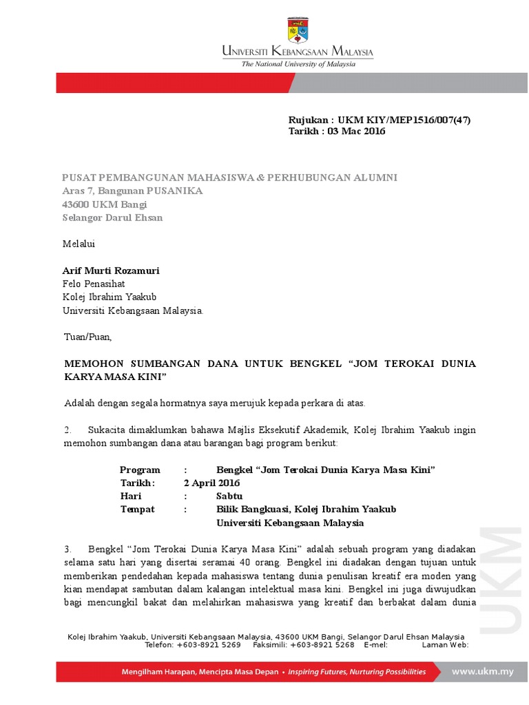 Surat Rasmi Memohon Dana Letter 7saudara Com